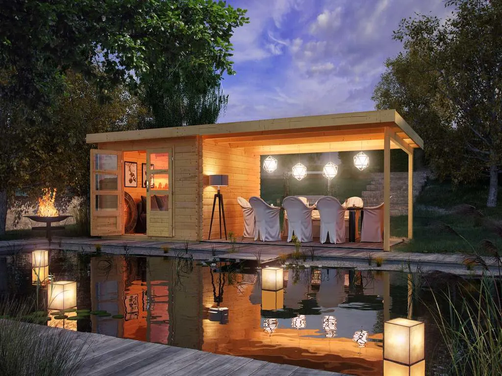 KARIBU Gartenhaus Bastrup Blockbohlenbauweise Pultdach