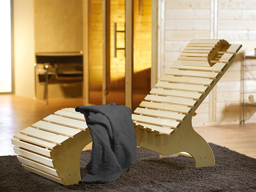 Die WEKA Komfortliege bietet Ihnen pure Entspannung. Ihre ergonomische Form sorgt zusammen mit der mitgelieferten Kopfstütze für maximale Bequemlichkeit. Gefertigt aus splitterfreiem Spezialholz zeigt sich die Liege im modernen, edlen Look. Die perfekte Ruhe-Oase zwischen Ihren Saunagängen!