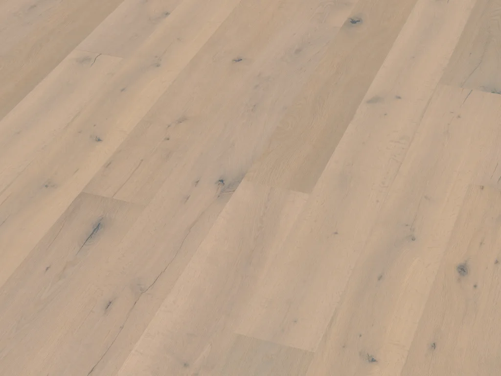 Die Optik des Bodens ist authentisch und abwechslungsreich – einfach zum Wohlfühlen. Der robuste Look des Eichenholzes wird durch seine technischen Vorteile bestätigt: es ist sehr hart, ökologisch, langlebig und zäh – ein Holz für die Ewigkeit.
