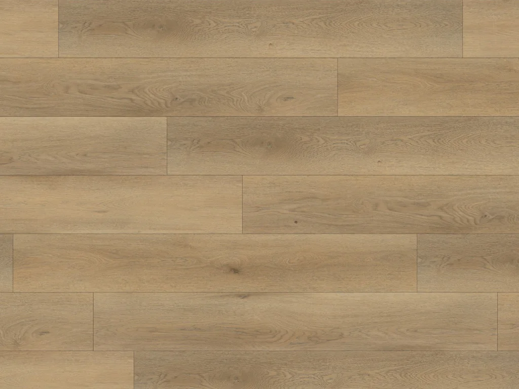 Bei diesem Boden handelt es sich um Rigid Vinyl. Durch den stabilen SPC-Kern, der das Herzstück bildet, hat diese besondere Vinylart zudem eine erhöhte Steifigkeit und Robustheit. Rigid Vinyl ist dadurch besonders formstabil und kann problemlos über vorhandenen Bodenbelag verlegt werden. Dank des SPC-Trägers ist der Boden hitzebeständig und wasserresistent – ideal auch für Feuchträume sowie Wintergärten und Räume mit bodentiefen Fenstern. Durch die 0,2 mm dicke Nutzschicht, die die Oberfläche bedeckt, ist der Bodenbelag besonders langlebig. Außerdem schützt diese Schicht vor Kratzern und Stößen. Dank seiner Resistenz gegen Nässe kann dieser Vinylboden auch in Feuchträumen wie Bad oder Küche verlegt werden. Über einer Warmwasserfußbodenheizung kann dieser Boden problemlos verlegt werden.