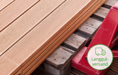 XL-Dielen (Parkett, Massivholzdielen, Laminat, Vinylboden, Terrassendielen) ab einer Länge von 2,30 m werden per Spedition als Langgut angeliefert. Die Versandkosten werden jedoch nach Stückgut berechnet (abhängig vom Warenwert).
