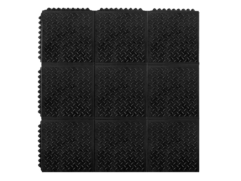 Die Einsatzmöglichkeiten der Gummifliesen sind vielseitig. Mit ihrer Hilfe kannst Du beispielsweise auf Spielplätzen, Terrassen, in Fitnessräumen oder Werkstätten eine ebene, rutschfeste Oberfläche bilden. Dabei wirken sie schalldämmend und isolierend gegen vom Boden aufsteigende Kälte. Außerdem sind die Gummifliesen robust und widerstandsfähig. Schlechte Witterungsverhältnisse und extreme Temperaturen können ihnen nichts anhaben, egal ob im Innen- oder Außenbereich. Durch die praktische Steckverbindung kann eine beliebig große Fläche abgedeckt werden. Die Gummifliesen können schwimmend verlegt werden und benötigen keine Fixierung auf dem Untergrund.