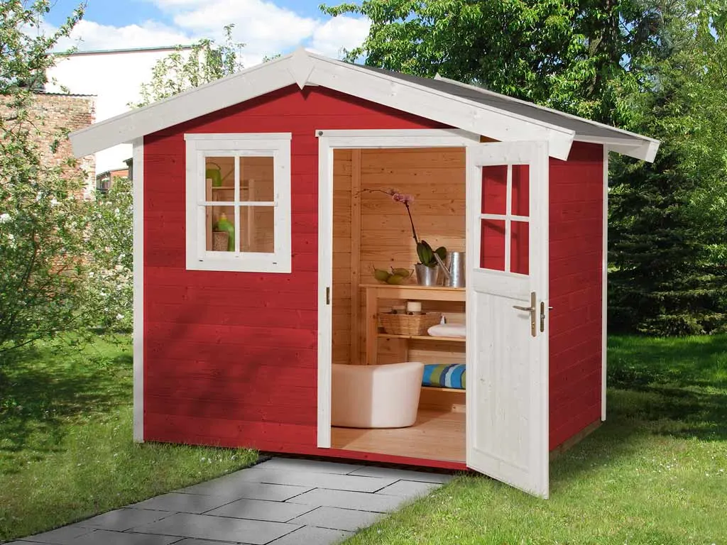 Setze ein farbiges Highlight in Deinem Garten. Dieses Gartenhaus überzeugt nicht nur durch seine Optik, der Holzschutzlack/-lasur in Schwedenrot schützt obendrein vor Schädlingen und Witterungseinflüssen und macht das Holz langlebiger und robuster. So ist auch nach längerer Zeit kein weiteres Streichen nötig.