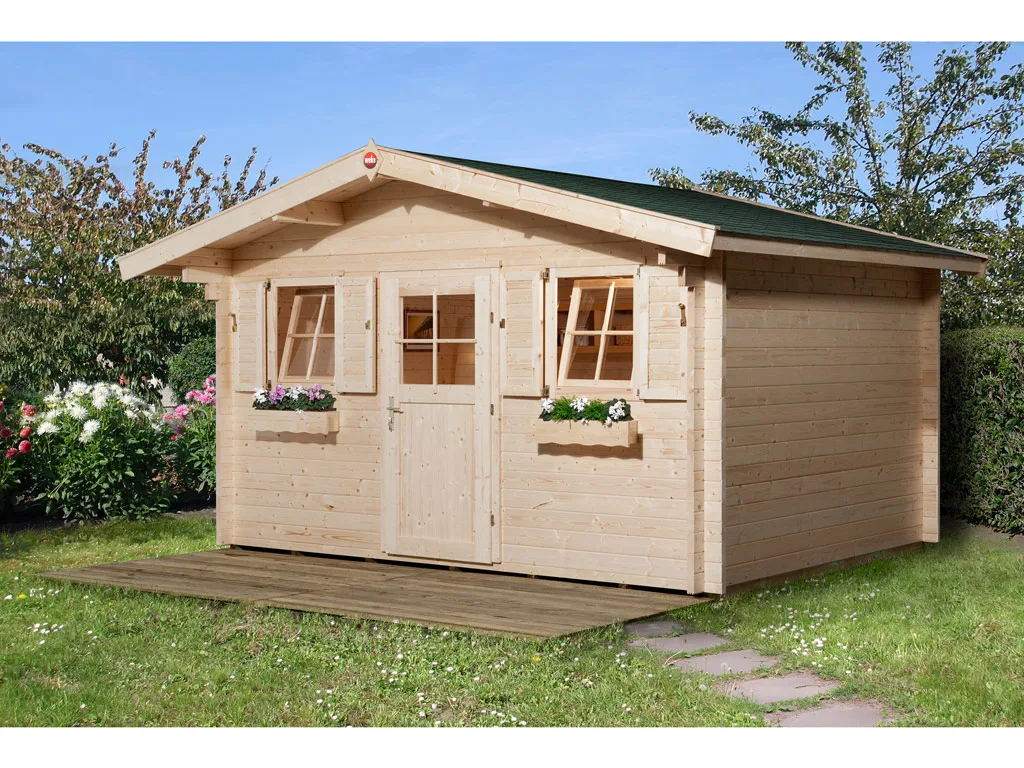 Die Wandstärke von 45 mm sorgt für gute Stabilität und Langlebigkeit. Dank der Bohlenstärke ist das Gartenhaus im Winter frostsicher, und im Sommer hat es gute wärmeisolierende Eigenschaften, was es zu einem perfekten Übernachtungsort für Gäste macht. Auch Pflanzen können in diesem Gartenhaus problemlos überwintern.