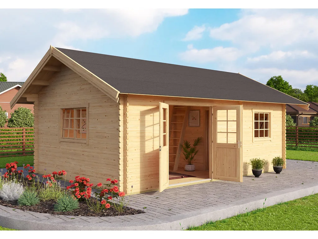 Als der Klassiker unter den Gartenhäusern verfügt ein Blockbohlenhaus über eine sehr robuste Bauweise, gepaart mit einer besonderen, natürlichen Ästhetik. Dabei orientiert sich die Bohlenbauweise an der traditionellen Blockhütte. Die Wände setzen sich aus vorgefertigten Holzbohlen zusammen, die dank einer Nut- und Feder-Verbindung ohne größere Anstrengungen aufeinander gesteckt werden können. Damit ist ein einfacher und schneller Auf- und Abbau garantiert. An der Kopfseite des Gartenhauses sorgt die charakteristische Verkämmung (spezielle Einkerbungen im Holz) nicht nur für eine schöne Optik, sondern hält das ganze Konstrukt auch zusammen und macht es absolut wind- und wetterfest.