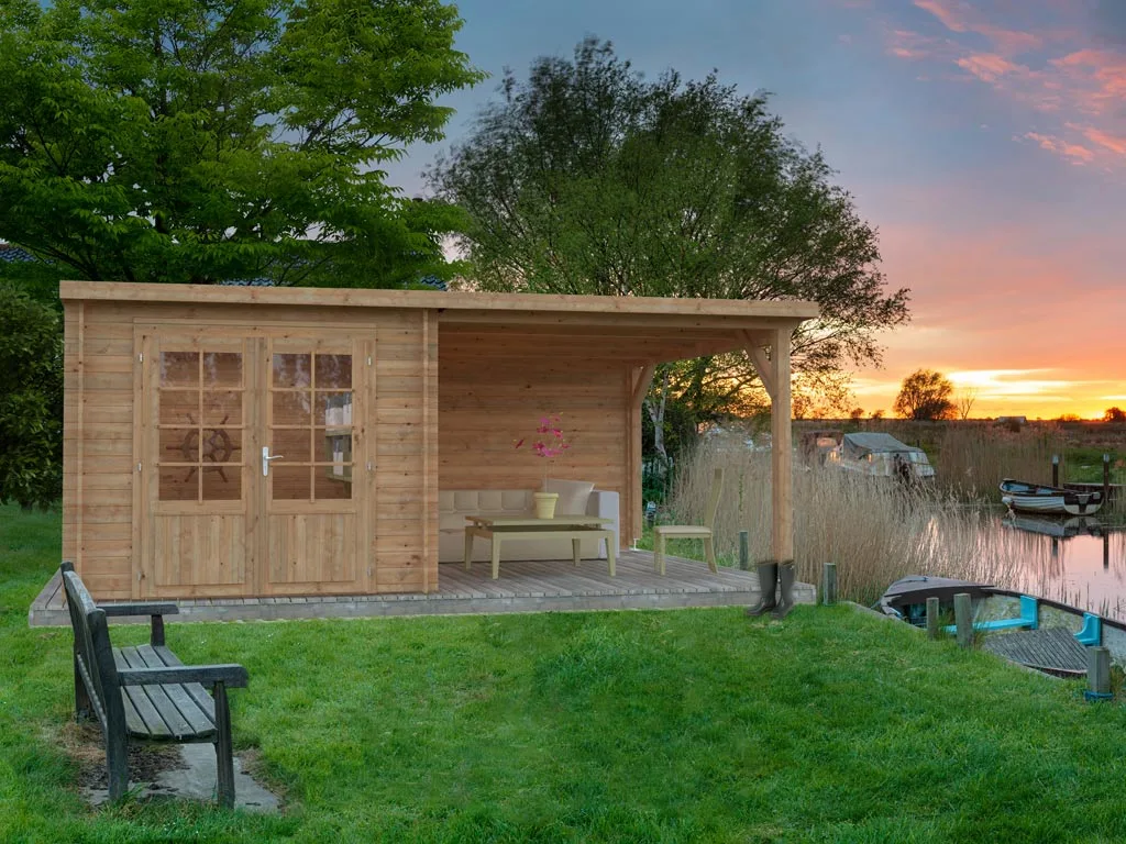 Das Gartenhaus mit Anbaudach und Rückwand ist sehr vielseitig. Der durch das Anbaudach geschaffene zusätzliche Stauraum eignet sich optimal als Lagerplatz für Gartenutensilien oder als Sitzbereich zum gemütlichen Verweilen. Dank Überdachung und integrierter Rückwand sind Geräte und Gartenmöbel optimal vor Wind und Wetter geschützt.
