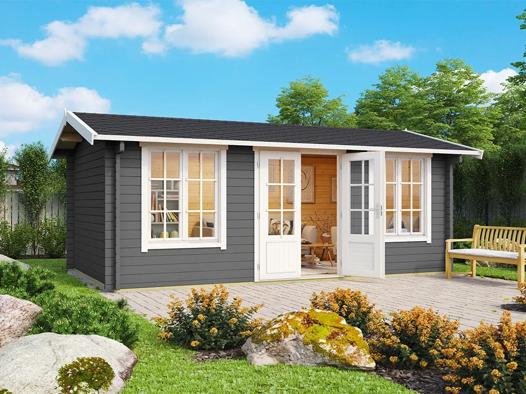 Die Wandstärke von 44 mm sorgt für gute Stabilität und Langlebigkeit. Dank der Bohlenstärke ist das Gartenhaus im Winter frostsicher, und im Sommer hat es gute wärmeisolierende Eigenschaften, was es zu einem perfekten Übernachtungsort für Gäste macht. Auch Pflanzen können in diesem Gartenhaus problemlos überwintern.