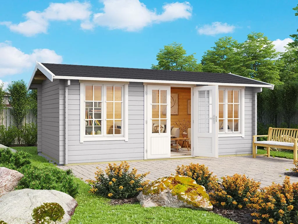 Die Wandstärke von 44 mm sorgt für gute Stabilität und Langlebigkeit. Dank der Bohlenstärke ist das Gartenhaus im Winter frostsicher, und im Sommer hat es gute wärmeisolierende Eigenschaften, was es zu einem perfekten Übernachtungsort für Gäste macht. Auch Pflanzen können in diesem Gartenhaus problemlos überwintern.