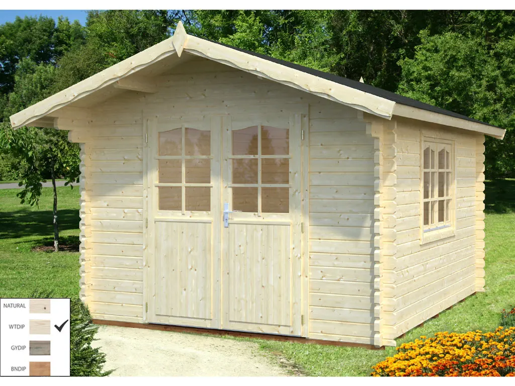 Das Holz ist tauchimprägniert und besitzt eine hohe Beständigkeit. Auch gewährt diese Imprägnierung Schutz vor Feuchtigkeit und UV-Strahlung sowie Befall durch Schädlinge. So wird die Langlebigkeit des Holzes deutlich erhöht und die Freude am Gartenhaus verlängert.