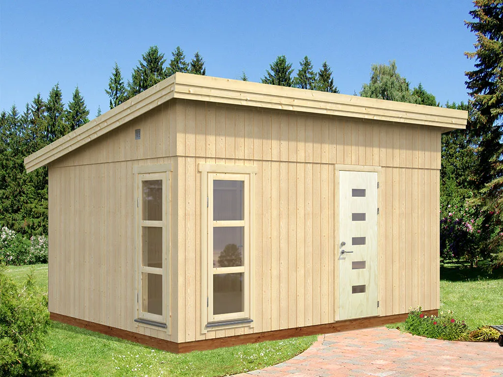 Die Grundfläche des Gartenhauses beträgt 13,6 m² mit einem Sockelmaß von 452 x 330 cm (B x T). Eine optimale Raumnutzung wird dank einer Firsthöhe von 294 cm gewährt.