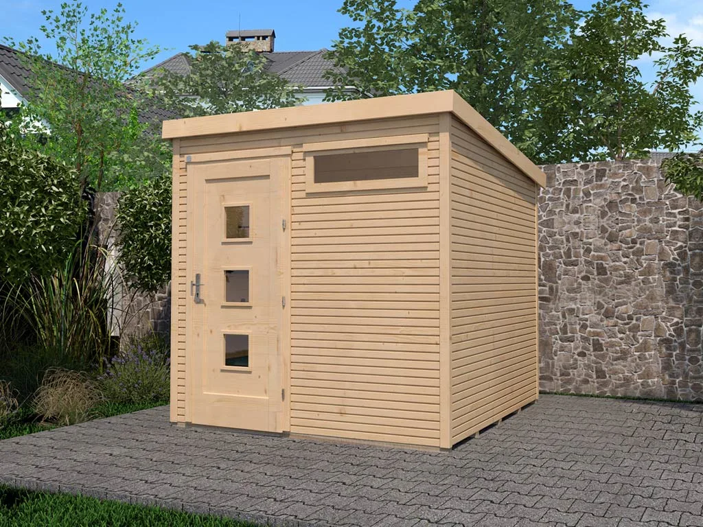 Das naturbelassene Holz sorgt für ein natürliches und zeitloses Aussehen. Außerdem ermöglicht Dir das unbehandelte Holz, das Äußere des Gartenhauses ganz nach Deinen eigenen Wünschen zu gestalten.