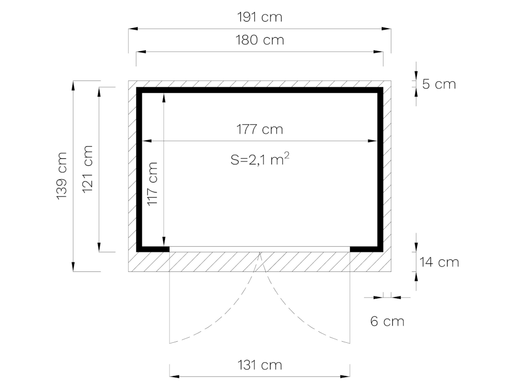 Innenmaß Haus / größter Raum (B x T cm): | 177 x 117 cm |