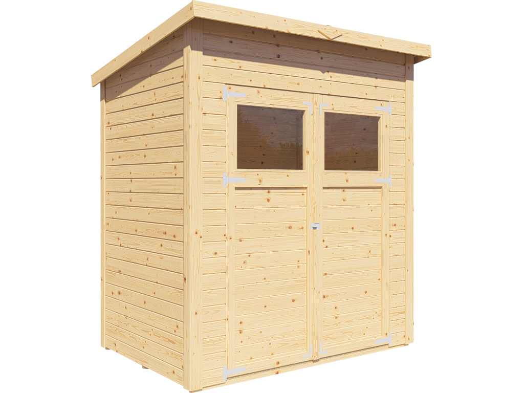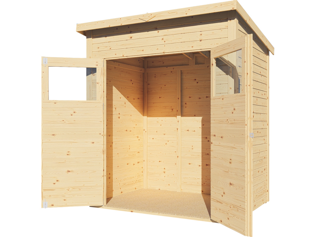 Ein modernes Pultdach aus Massivholz mit Nut- und Feder-Verbindung verleiht deinem Gartenhaus eine stilvolle, elegante Optik. Durch nur eine geneigte Dachfläche ist die Nutzungsfläche im Inneren des Gartenhauses deutlich weniger eingeschränkt und der Verlust an Nutzraum gering. Zudem lässt die Neigungsseite des Pultdaches das Regenwasser gut abfließen und es ist die Montage von nur einer Regenrinne nötig.