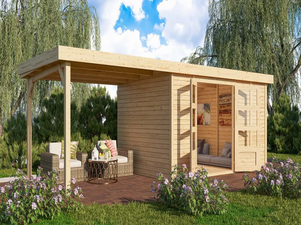 Das naturbelassene Holz sorgt für ein natürliches und zeitloses Aussehen. Außerdem ermöglicht Dir das unbehandelte Holz, das Äußere des Gartenhauses ganz nach Deinen eigenen Wünschen zu gestalten.