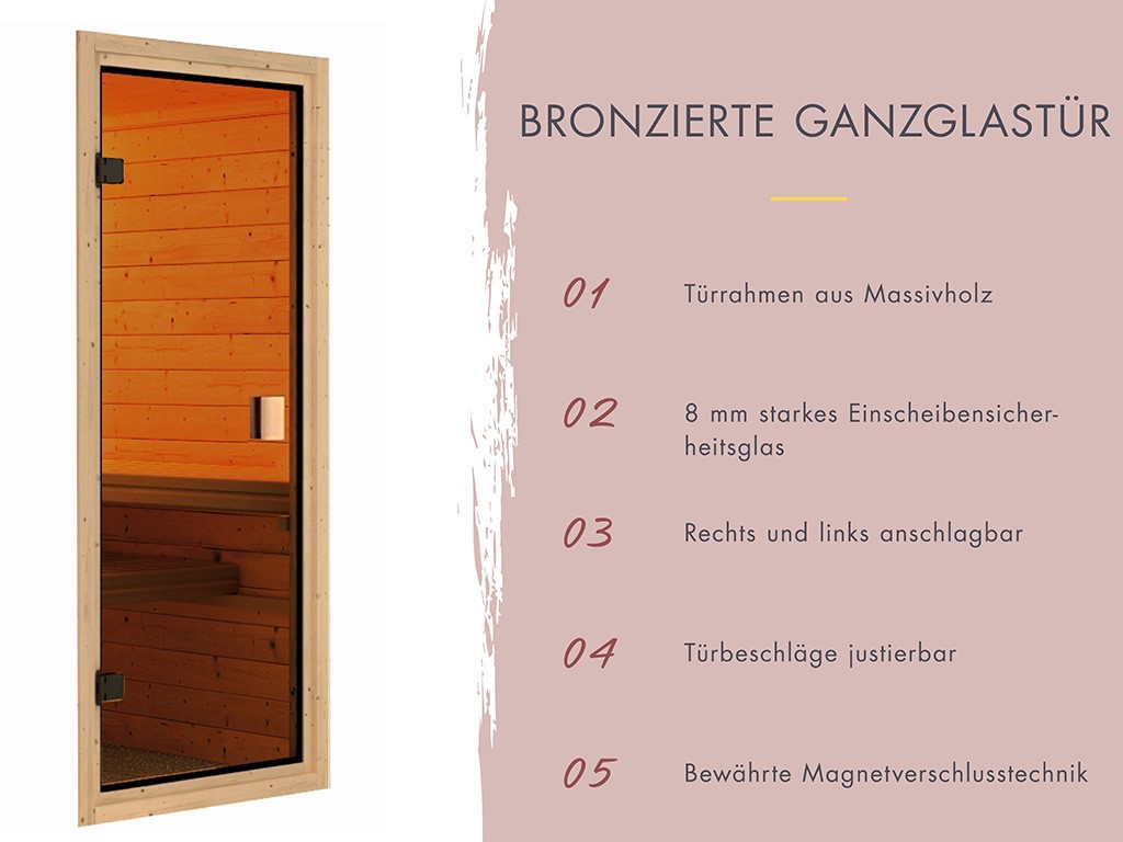 KARIBU Gartensauna Lenchen 6 terragrau mit Vorraum und bronzierter Ganzglastür