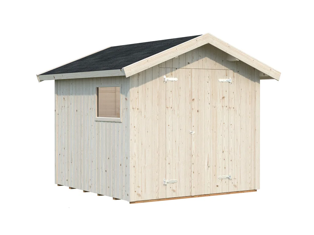 Das hochwertig gearbeitete Gerätehaus zeichnet sich durch sein ausgesuchtes, erstklassiges Fichtenholz aus. Fichte ist besonders langlebig und robust, was für die notwendige Stabilität sorgt. Außerdem überzeugt die Holzart mit geringem Gewicht, einer leichten Verarbeitung und hoher Elastizität.