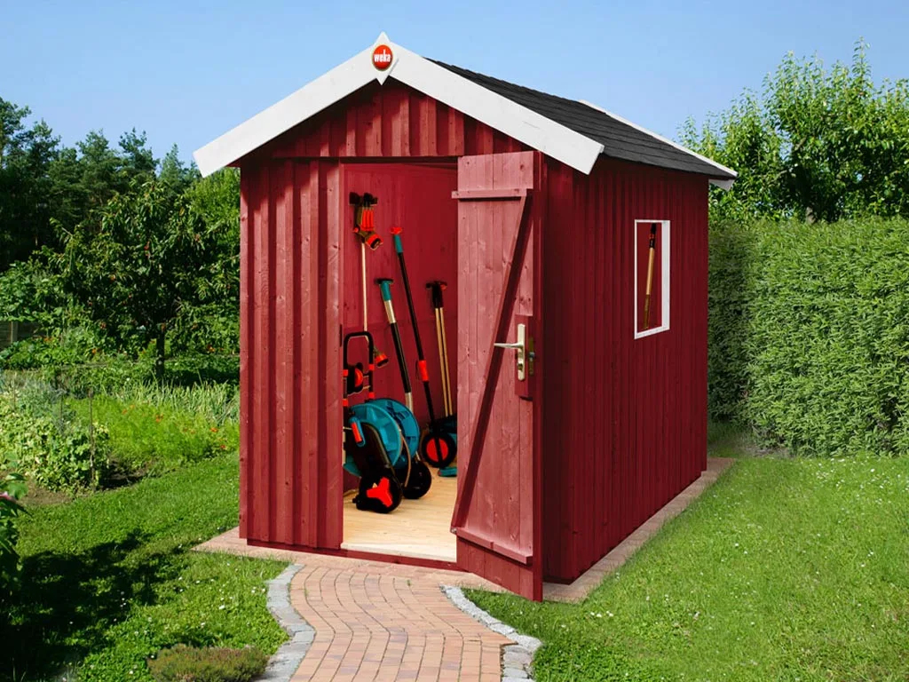Unser WEKA Schwedenhaus lässt die Herzen der Schwedenfans höherschlagen. Es ist einfach aufzubauen und bietet genügend Stauraum für Fahrräder oder Gartenutensilien. Das Gartenhaus ist 162 cm breit und 168 cm tief. Für die nötige Stabilität des Schwedenhauses sorgen der 19 mm stabile Massivholzboden, die 16 mm starke Deckelschalung als Wand und das 19 mm starke Massivholz-Satteldach. Schweden steht für die Affinität zur Natur und einen relaxten Lebensstil. Mit diesem Haus in traditioneller Optik holen Sie sich ein Stück dieser Lebensart in Ihren Garten.