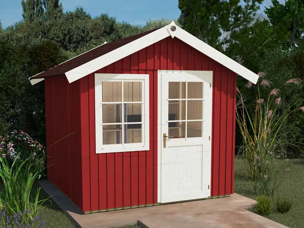 Die Grundfläche des Gartenhauses beträgt 9 m² mit einem Sockelmaß von 295 x 299 cm (B x T). Eine optimale Raumnutzung wird dank einer Firsthöhe von 277 cm gewährt.