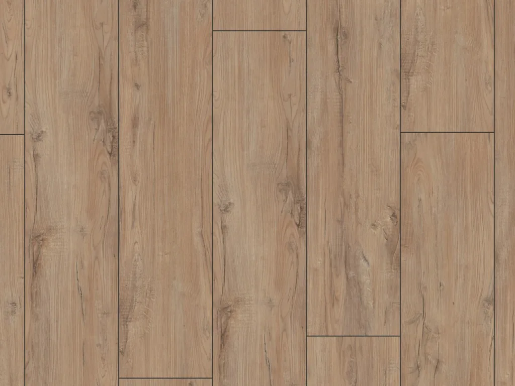 Diese Laminat-Diele in extra breitem 244 mm Format überzeugt durch ihre starke Optik, die das schöne Dekor so noch besser zur Geltung kommen lässt.