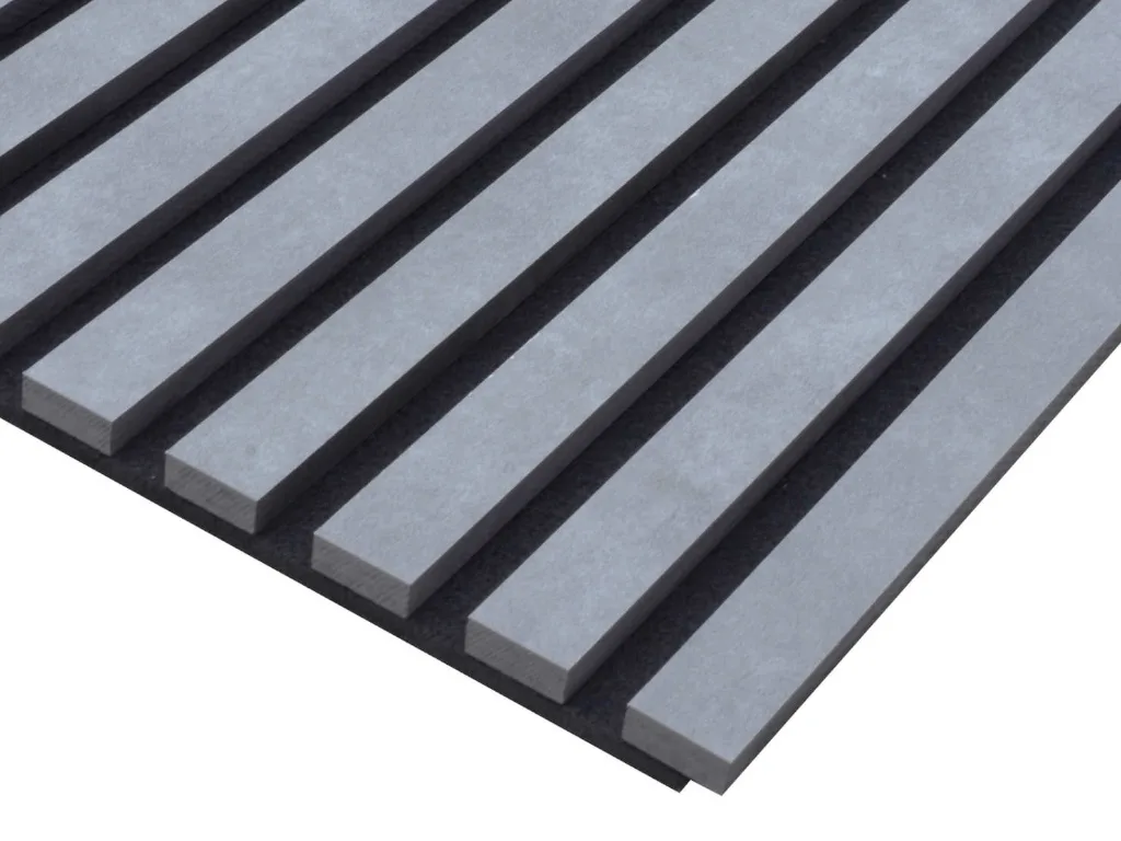 Die Paneele bestehen aus einer 9 mm starken Trägerplatte aus PET-Fasern, auf der folierte MDF-Lamellen angebracht sind. Der Abstand der Lamellen beträgt 15 mm. Diese besondere Struktur ermöglicht eine optimale akustische Regulierung und Nachhalldämpfung.