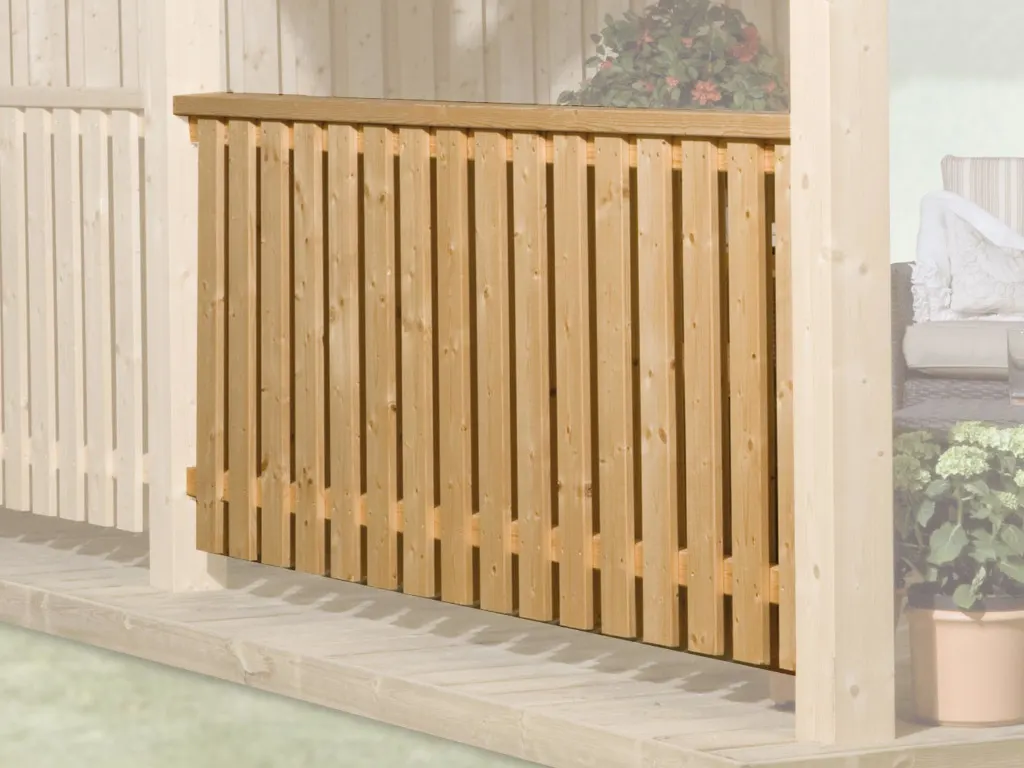 Das halbhohe Brüstungsgeländer für die Terrassenüberdachung 672 dient mit einer Höhe von 90 cm als Sicht- und Windschutz.