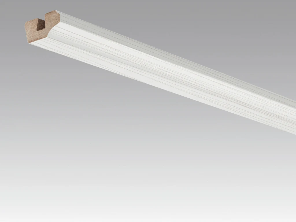 Die Deckenabschlussleiste in Silber setzt mit ihrer dezenten Folierung in Metalloptik moderne Akzente. Mit den Maßen 38 x 19 mm (B x H) und einer Länge von 238 cm eignet sie sich ideal für einen sauberen, stilvollen Abschluss zwischen Wand und Decke – besonders in puristischen oder industriell angehauchten Raumkonzepten.