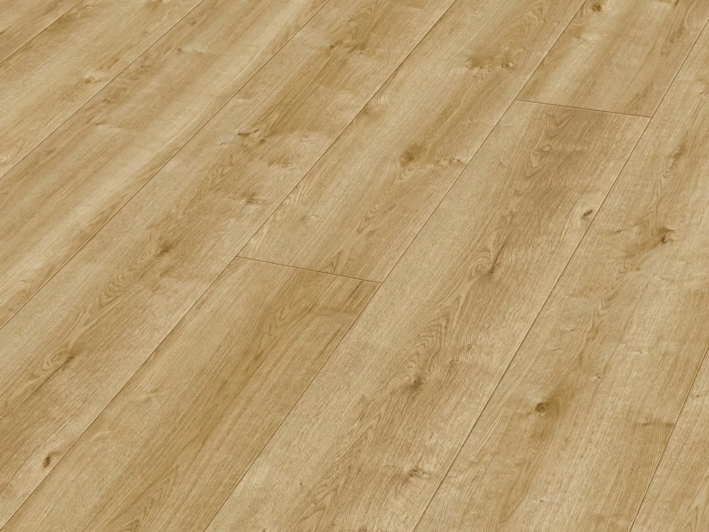 Die Stärke dieses Bodens beträgt 8 mm. Die Klickverbindung garantiert eine schnelle und leicht zu handhabende, schwimmende Verlegung.