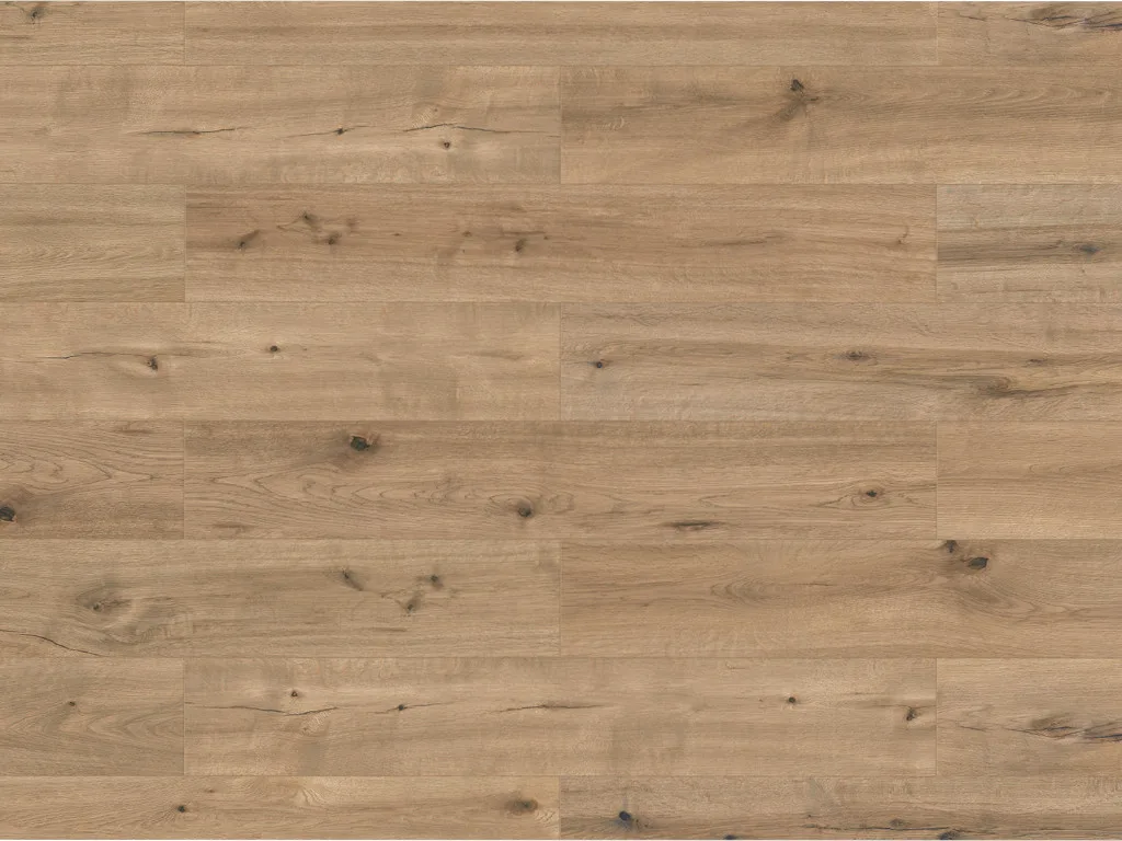 Landhausdielen besitzen mit ihrer Ein-Stab-Optik einen natürlichen und rustikalen Look, der jeden Raum gemütlich wirken lässt. Die 4-seitig umlaufende V-Fuge der Diele betont den rustikalen Landhaus-Charakter. Dank modernster Prägetechnologien wird die strukturierte Oberfläche dieses Bodens bis ins kleinste Detail der Beschaffenheit von Holz nachempfunden.