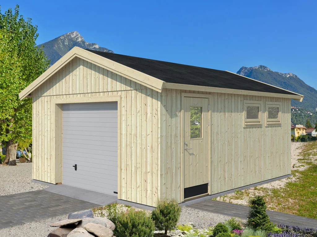 B x T H: 448 x 548 x 316 cm, 2 Fenster + 2 Einflügeltür, naturbelassen