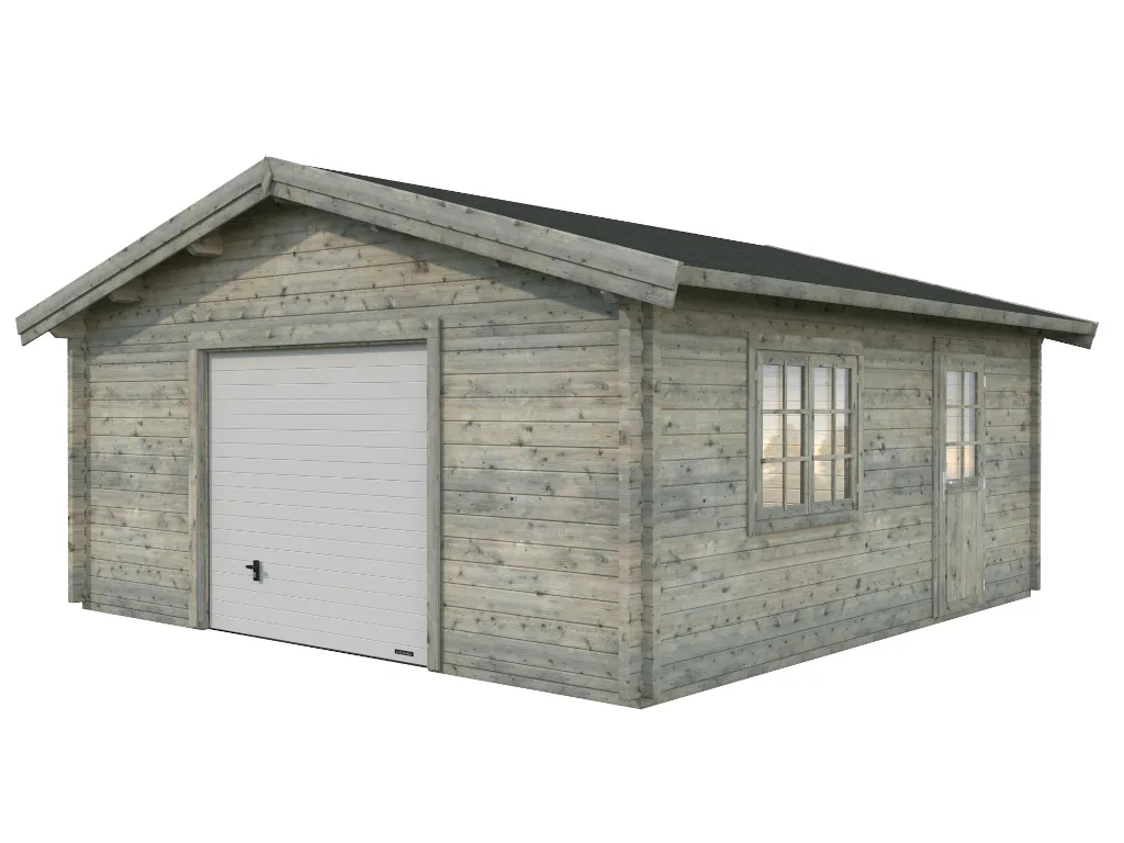 B x T x H: 560 x 560 x 312 cm, Fenster + Einzeltür + inkl. Sektionaltor, grau tauchimprägniert