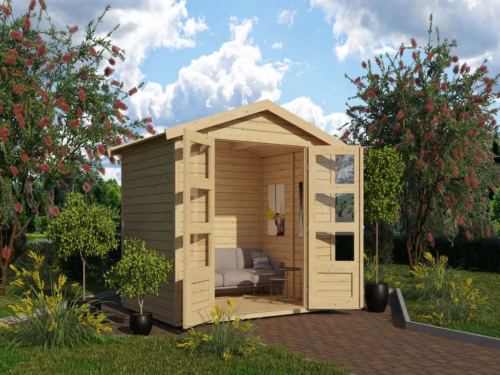 Das Gartenhaus wird ohne Fußboden geliefert. Einen passenden Fußboden (achte auf die Serienbezeichnung) findest du in unserem Zubehörsortiment.