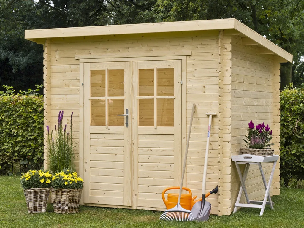 Geräumiges Gerätehaus in robuster Blockbohlenbauweise