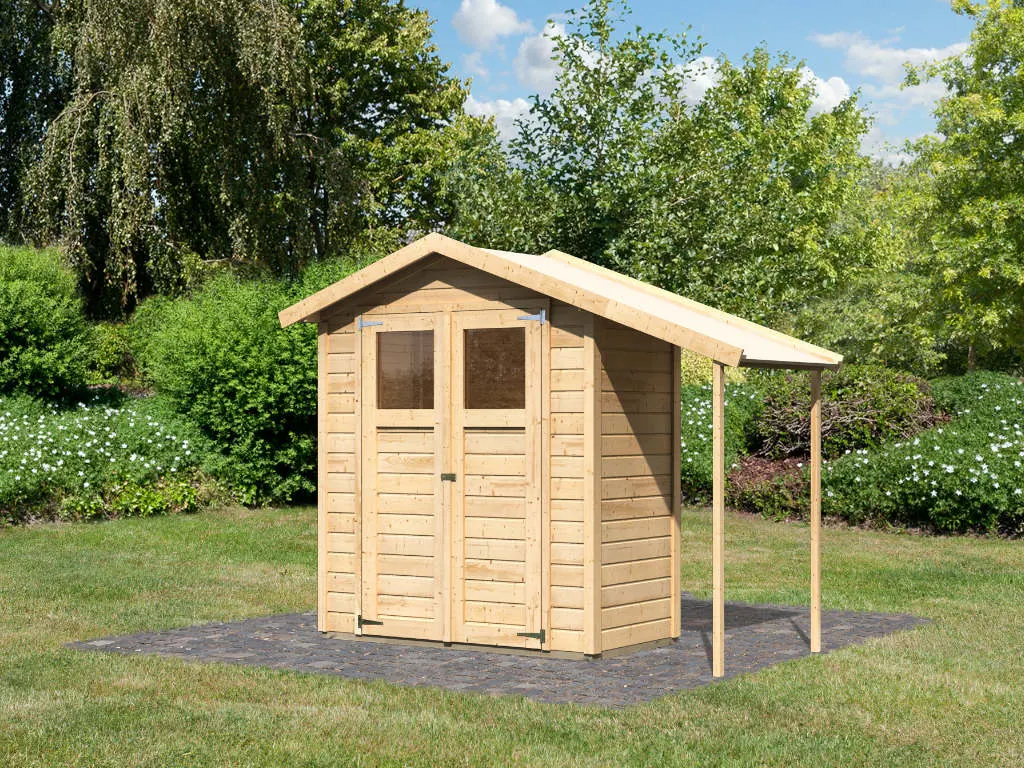 Dieses klassische Gartenhaus überzeugt mit seiner Praktikabilität. Dank seines traditionsbewussten, unaufdringlichen Designs fügt es sich in jede Umgebung perfekt ein und strahlt dabei Gemütlichkeit und Heimeligkeit aus. Ob als Unterstellplatz für Gartengeräte, Grills, Fahrräder oder als Hobbyraum – das klassische Gartenhaus bietet Raum für deine individuellen Bedürfnisse.