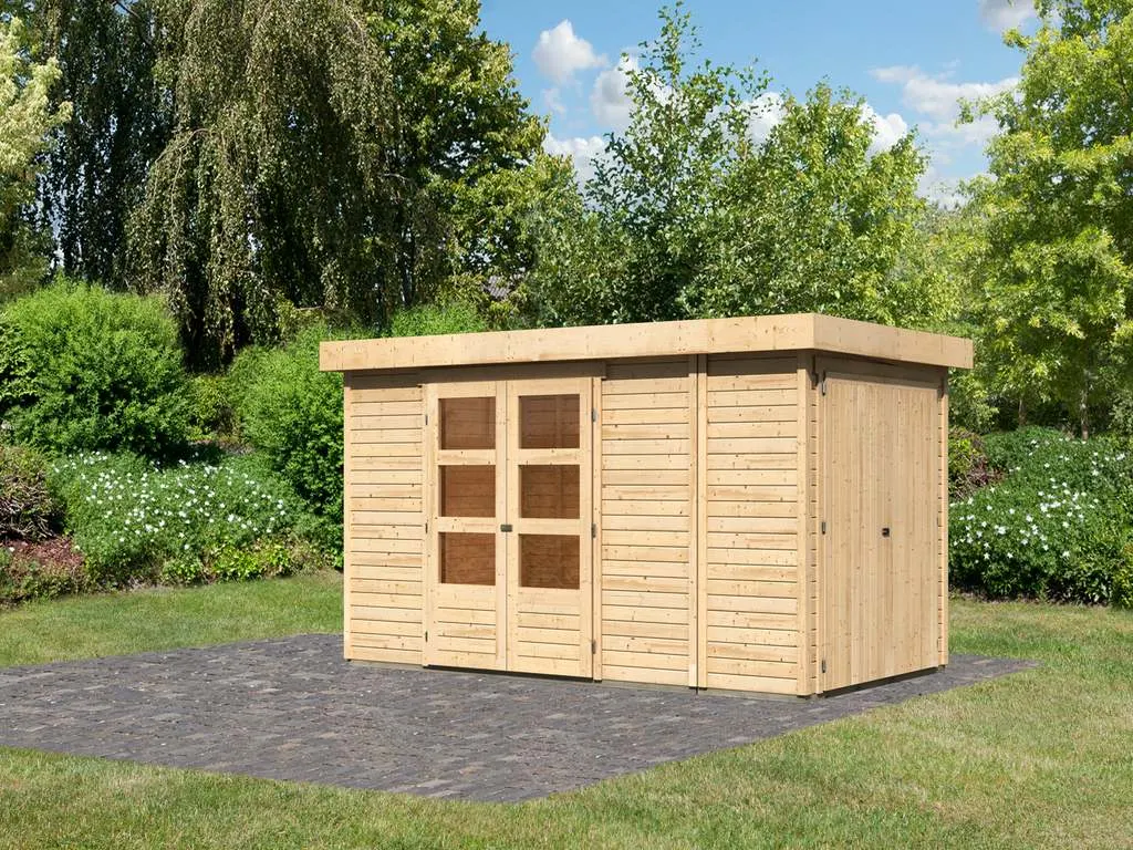 Dieses klassische Gartenhaus überzeugt mit seiner Praktikabilität. Dank seines traditionsbewussten, unaufdringlichen Designs fügt es sich in jede Umgebung perfekt ein und strahlt dabei Gemütlichkeit und Heimeligkeit aus. Ob als Unterstellplatz für Gartengeräte, Grill, Fahrrad oder als Hobbyraum - das klassische Gartenhaus bietet Raum für Deine individuellen Bedürfnisse.