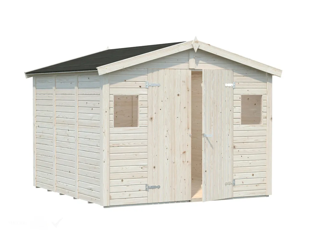 B x T x H: 273 x 280 x 220 cm, 2 Fenster + Doppelflügeltür, naturbelassen