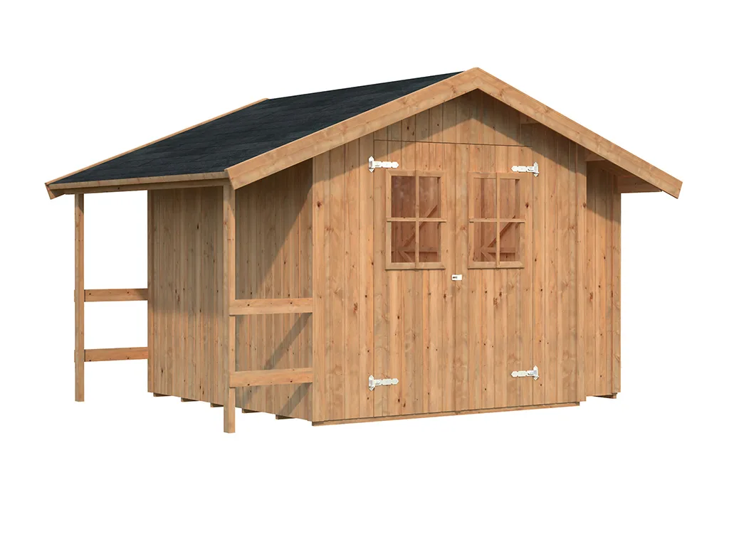 Mit der Elementbauweise ist Dein Gerätehaus besonders schnell und einfach montiert. Bei dieser Bauweise bestehen die Wände nicht aus einzelnen Bohlen, sondern aus bereits vorgefertigten Wandelementen, die sich aus einem Holzrahmen und bereits miteinander befestigten Profilhölzern zusammensetzen. Diese Wandelemente werden einfach miteinander verschraubt, das vorgefertigte Dachelement aufgesetzt und schon kann man sich an diesem praktischen Gerätehaus erfreuen! Eine individuelle Gestaltung bieten zudem Türen und Fenster, die durch das Austauschen einzelner Wandelemente eingebaut werden können.