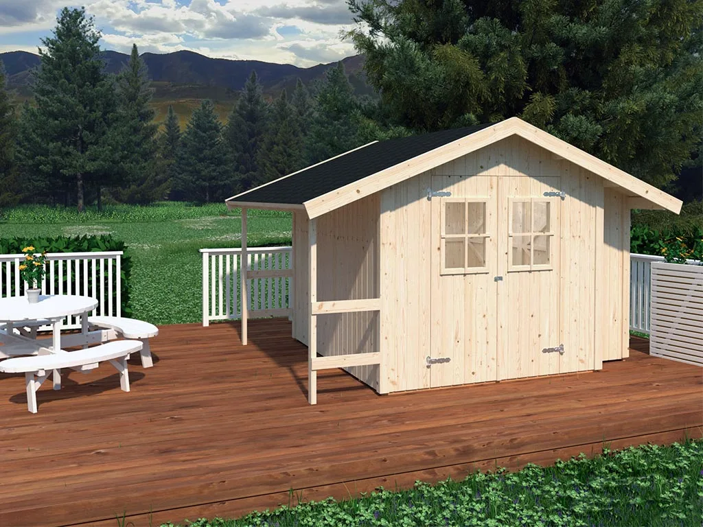 Mit der Elementbauweise ist Dein Gerätehaus besonders schnell und einfach montiert. Bei dieser Bauweise bestehen die Wände nicht aus einzelnen Bohlen, sondern aus bereits vorgefertigten Wandelementen, die sich aus einem Holzrahmen und bereits miteinander befestigten Profilhölzern zusammensetzen. Diese Wandelemente werden einfach miteinander verschraubt, das vorgefertigte Dachelement aufgesetzt und schon kann man sich an diesem praktischen Gerätehaus erfreuen! Eine individuelle Gestaltung bieten zudem Türen und Fenster, die durch das Austauschen einzelner Wandelemente eingebaut werden können.