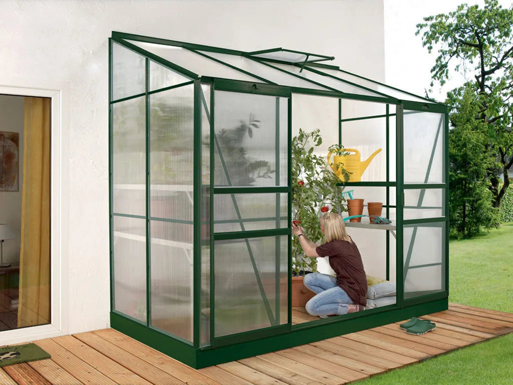 Dieses Anlehngewächshaus verlängert auch im kleinen Garten oder auf der Terrasse Ihre Gartensaison