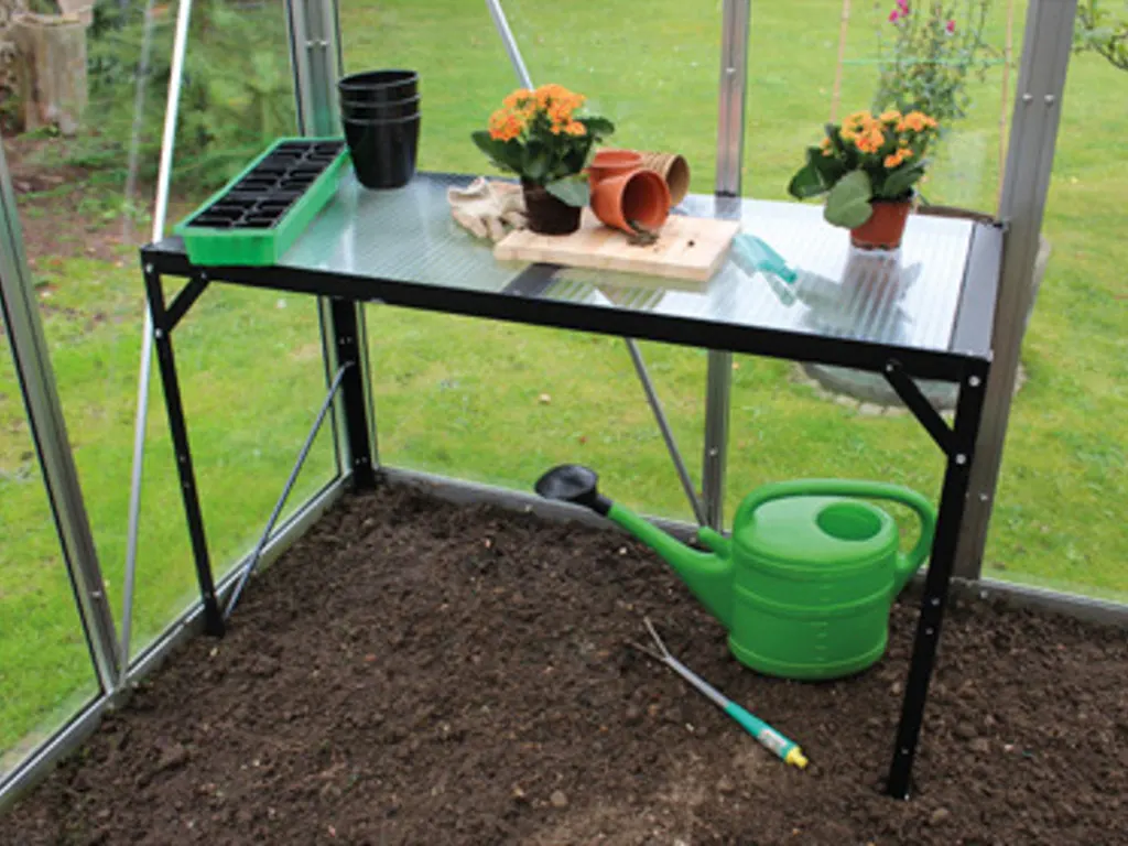 Optimieren Sie Ihr Gewächshaus. Der Tisch bietet eine nützliche Arbeitsfläche oder eine zusätzliche Ablagefläche.