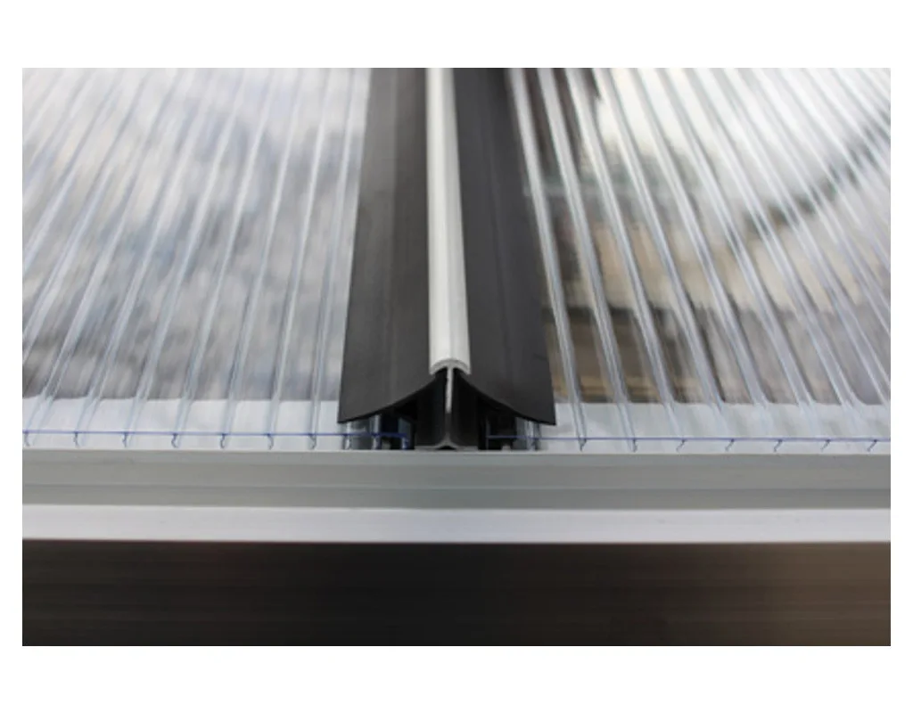 Montage Bei der Montage der Windsicherung werden die Hohlkammerplatten beidseitig mit Aluminiumwinkeln mit dem Alu-Rahmen fest verbunden um einen hohe Stabilität zu gewährleisten. Die Glasfederklammern werden nicht benötigt.