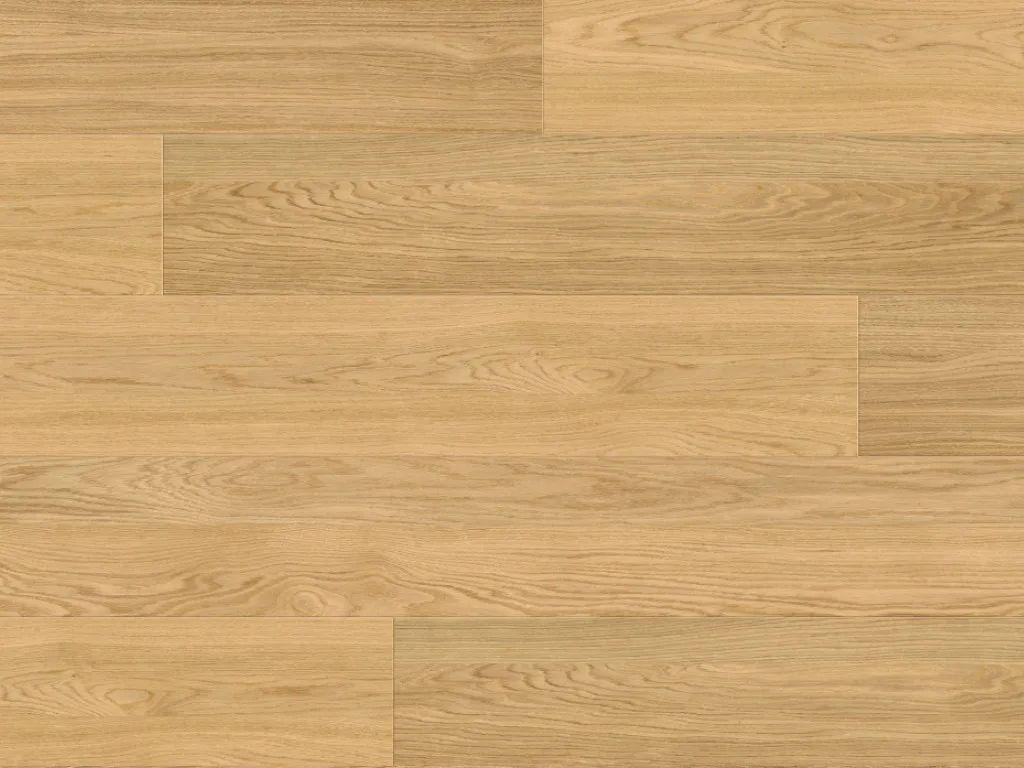 Das Parkett ist harmonisch gemasert: Das Holz ist frei von Rissen und Astlöchern. Dank der strukturierten Oberfläche entsteht bei diesem Boden ein besonders hochwertiges Erscheinungsbild, das kein Detail auslässt. Die Oberfläche der Dielen ist matt lackiert. Das sorgt für besondere Langlebigkeit und macht den Boden pflegeleicht.
