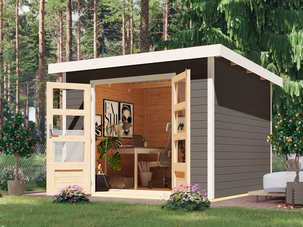 KARIBU Hybrid-Gartenhaus Pluto B terragrau/weiß