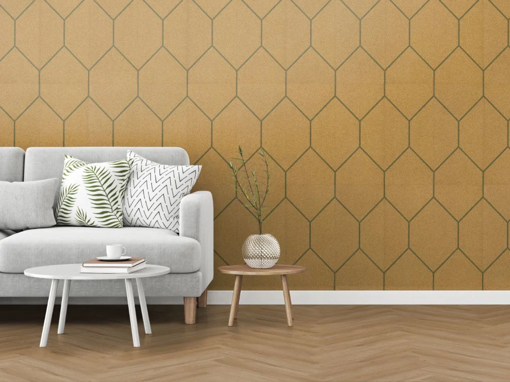 Mit den GROOVY-Wandfliesen aus Kork verleihst du deinen Räumen eine elegante Vintage-Note. Ihr Design, charakterisiert durch CNC-gefräste, geradlinige und schlichte Muster, besteht gänzlich aus postindustriell recyceltem Kork und bildet ein sechseckiges Motiv an der Wand. Die von GROOVY kreierten Retro-Vibes werden durch die natürliche Optik des Korks wunderbar ausgeglichen und es entsteht ein Look, der absolut modern aussieht – und sich auch so anfühlt.