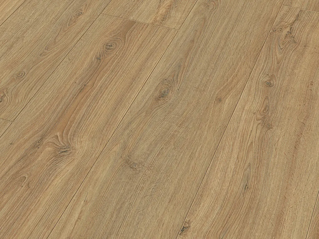 Dank seiner Resistenz gegen Nässe aufgrund der wasserresistenten Trägerplatte kann dieser Laminatboden auch in Feuchträumen wie Bad oder Küche verlegt werden. Über einer Warmwasserfußbodenheizung kann dieser Boden problemlos verlegt werden.