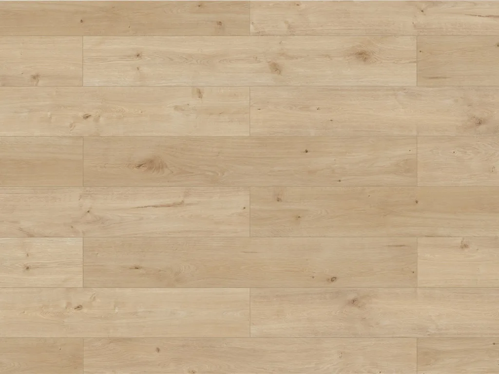 Das Dekor in authentischer Eichenholzoptik vermittelt fühlbare Wärme und Behaglichkeit. Landhausdielen bringen mit ihrem natürlich wirkenden 1-Stab-Design südliches Flair in Dein Zuhause und schaffen eine Atmosphäre voller Ruhe und Gemütlichkeit. Die umlaufende 4-V-Fuge hebt jede einzelne Diele hervor und gibt der Fläche so eine schöne Struktur. Dank der glatten Struktur entsteht eine angenehm ausgleichende Raumatmosphäre, wie beim Blick auf einen ruhigen See.