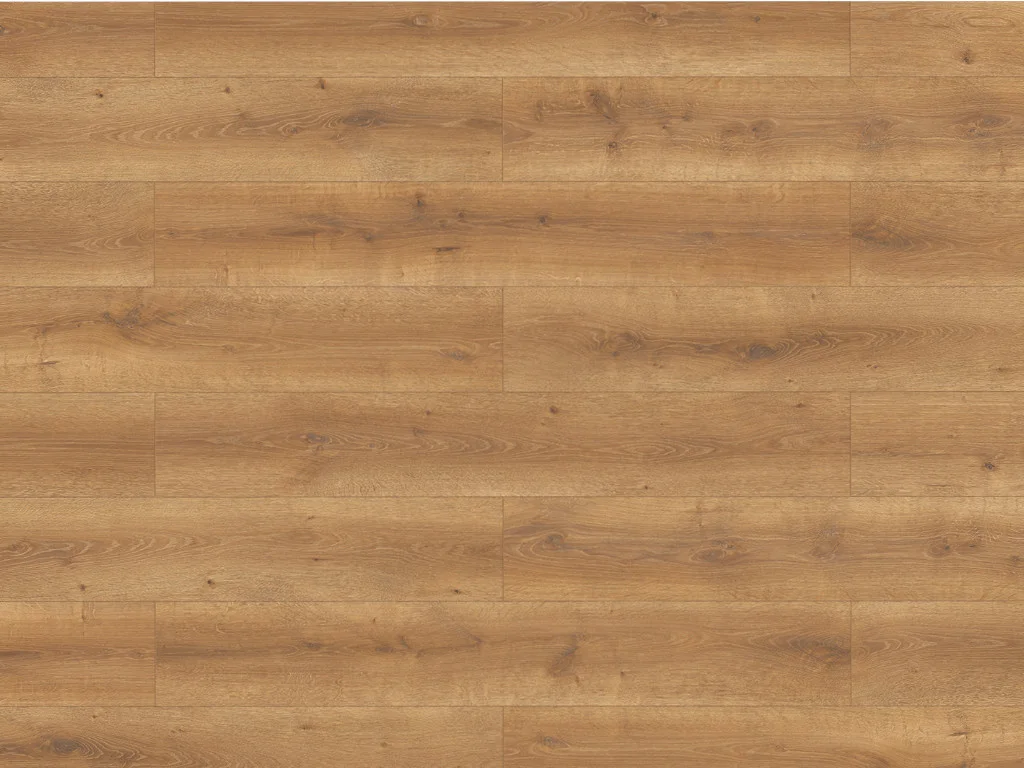 Das Dekor in authentischer Eichenholzoptik vermittelt fühlbare Wärme und Behaglichkeit. Landhausdielen bringen mit ihrem natürlich wirkenden 1-Stab-Design südliches Flair in Dein Zuhause und schaffen eine Atmosphäre voller Ruhe und Gemütlichkeit. Die umlaufende 4-V-Fuge hebt jede einzelne Diele hervor und gibt der Fläche so eine schöne Struktur. Dank der glatten Struktur entsteht eine angenehm ausgleichende Raumatmosphäre, wie beim Blick auf einen ruhigen See.