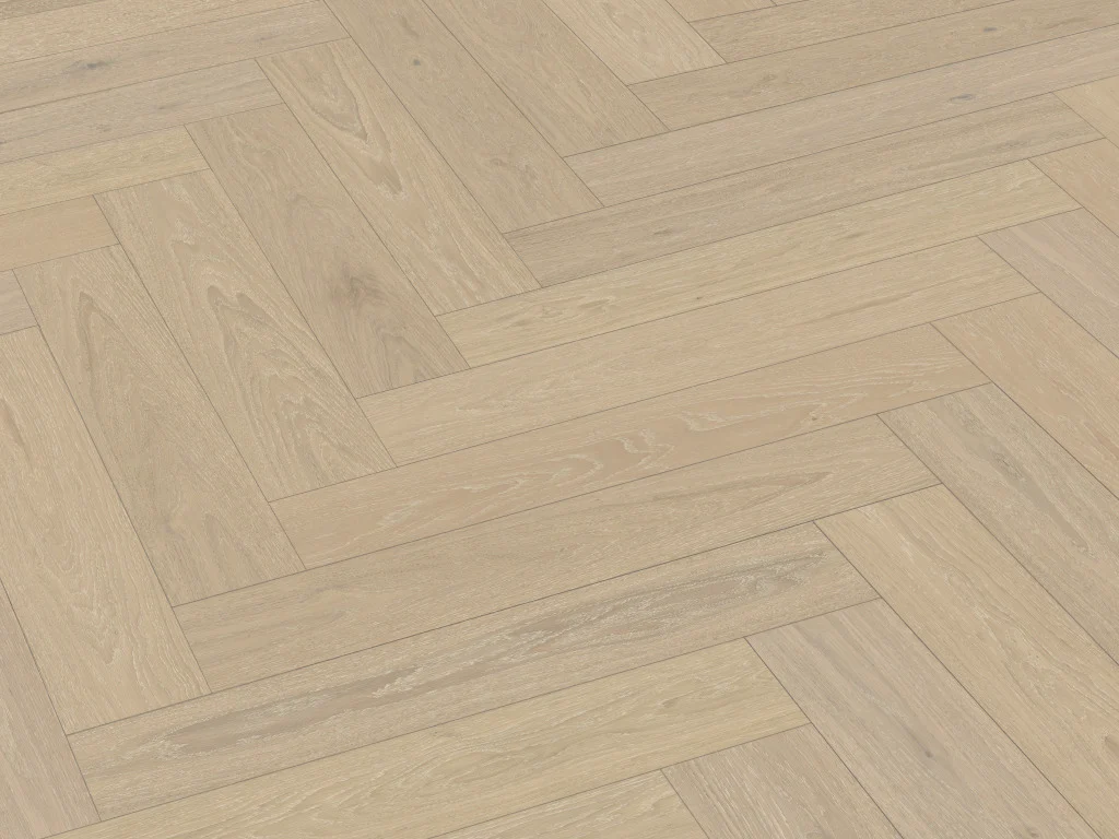 Das Fischgrät-Design dieses Bodens ist nicht umsonst so populär – aufgrund seiner schönen und eleganten Dielen-Struktur verwandelt es jeden Raum in ein luxuriöses Palais. Die an vier Seiten umlaufende Fase hebt den Dielen-Charakter besonders schön hervor. Die Oberfläche ist dank ihrer strapazierfähigen Lack-Versiegelung ausgezeichnet vor Feuchtigkeit, Kratzern und Schmutz geschützt. Von weicheren Holzschichten befreit, bildet das harte, stabile Kernholz der Diele eine fühlbar strukturierte, dreidimensionale und lebendig wirkende Oberfläche.