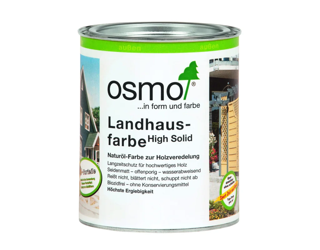 Osmo Landhausfarbe ist bestens geeignet für jedes Holz im Außenbereich, insbesondere für Holzfassaden, Gartenhäuser, Marktstände, Pavillons, Grillkotas, Überdachungen, Carports, Garagen, Terrassenbeläge, Zäune, Hochbeete, Gartenmöbel, Türen, Fenster und Fensterläden.