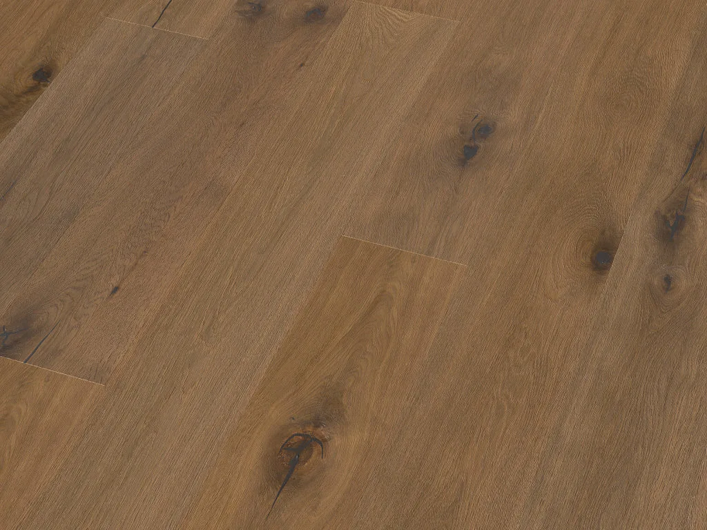 Typisch für das verwendete Eichenholz dieser Diele sind die Jahresringe sowie kleinere oder größere Astfüllungen, die für einen einzigartigen, individuellen Look in Deinem Heim sorgen. Aufgrund seiner Härte und schönen Maserung ist der Eichenholzboden der ultimative Lieblingsboden der Europäer.