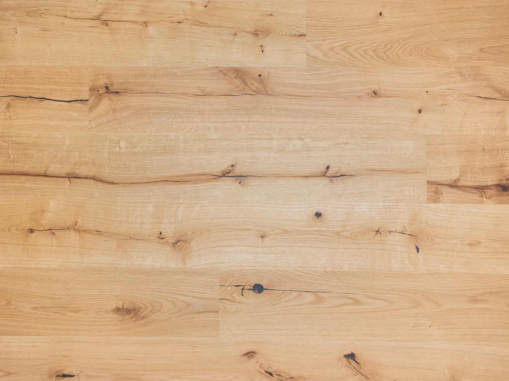 Das Holz der Eiche verleiht diesen Dielen einen urwüchsigen Charakter und schenkt allen Räumen stilvolle Wärme und Behaglichkeit. Neben seiner luxuriösen Optik ist Eichenholz relativ hart, aber dennoch trittelastisch.